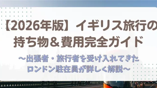 イギリスについて 【2026年版】イギリス旅行の持ち物&費用完全ガイド~ロンドン駐在員が解説~ 2026年3月29日 ぷーた どうも、ロンドン駐在員のぷーたです。 この記事では、次のような疑問を解決します。 イギリスに旅行する予定なんだけど、どんなも …