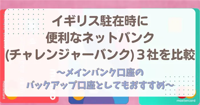 イギリス駐在時に便利なネットバンク (チャレンジャーバンク)3社を比較~メインバンク口座の バックアップ口座としてもおすすめ~