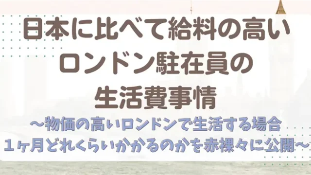 駐在員の生活 日本に比べて給料の高いロンドン駐在員の生活費事情~物価の高いロンドンで生活する場合1ヶ月どれくらいかかるのかを赤裸々に公開~ 2024年6月5日 ぷーた https://london-chuzai.com/wp-content/uploads/2021/05/2021-05-26_22h26_081.jpg ロンドン海外駐在ブログ どうも、ロンドン駐在員のぷーたです。 今回の記事は、次のような方の疑問を解決するために書いています。 ロンドンは物価が高いと …