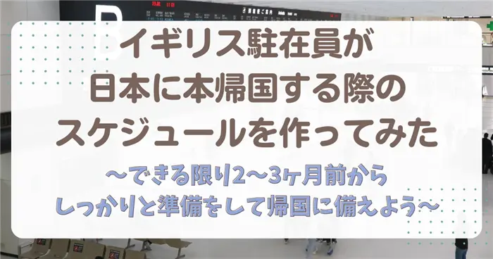 以上、イギリスから日本に本帰国するときに行うべきことを解説しました。ここでまとめとして、あらためて最初にお見せしたスケジュールをお見せしておきます。
