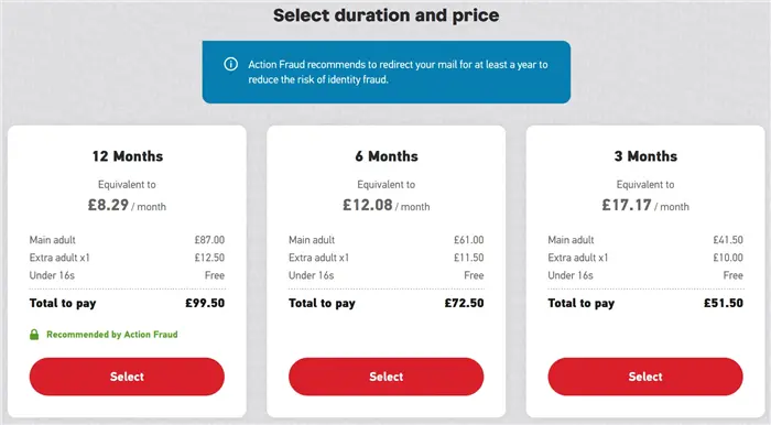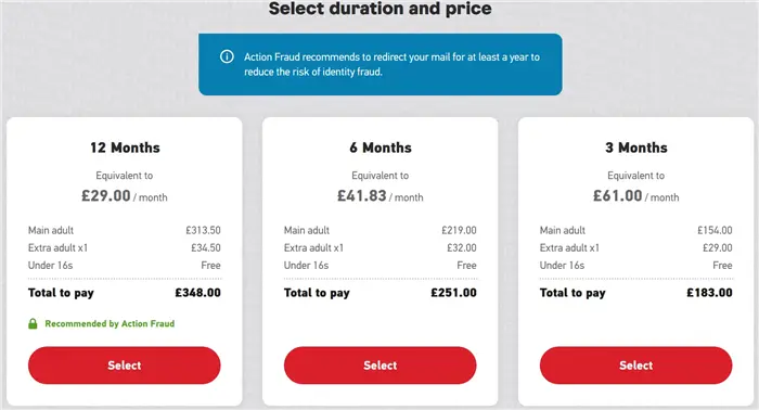 郵便転送はRoyal MailのWebサイトで申し込むことが可能です。問題となるのはそのコストなのですが、家族4人分のイギリス国内住所への転送届は、1年間で99.5ポンド(1月当たり8.29ポンド)となっています。日本だとタダなんですが、イギリスではしっかりと料金を取ってきます。