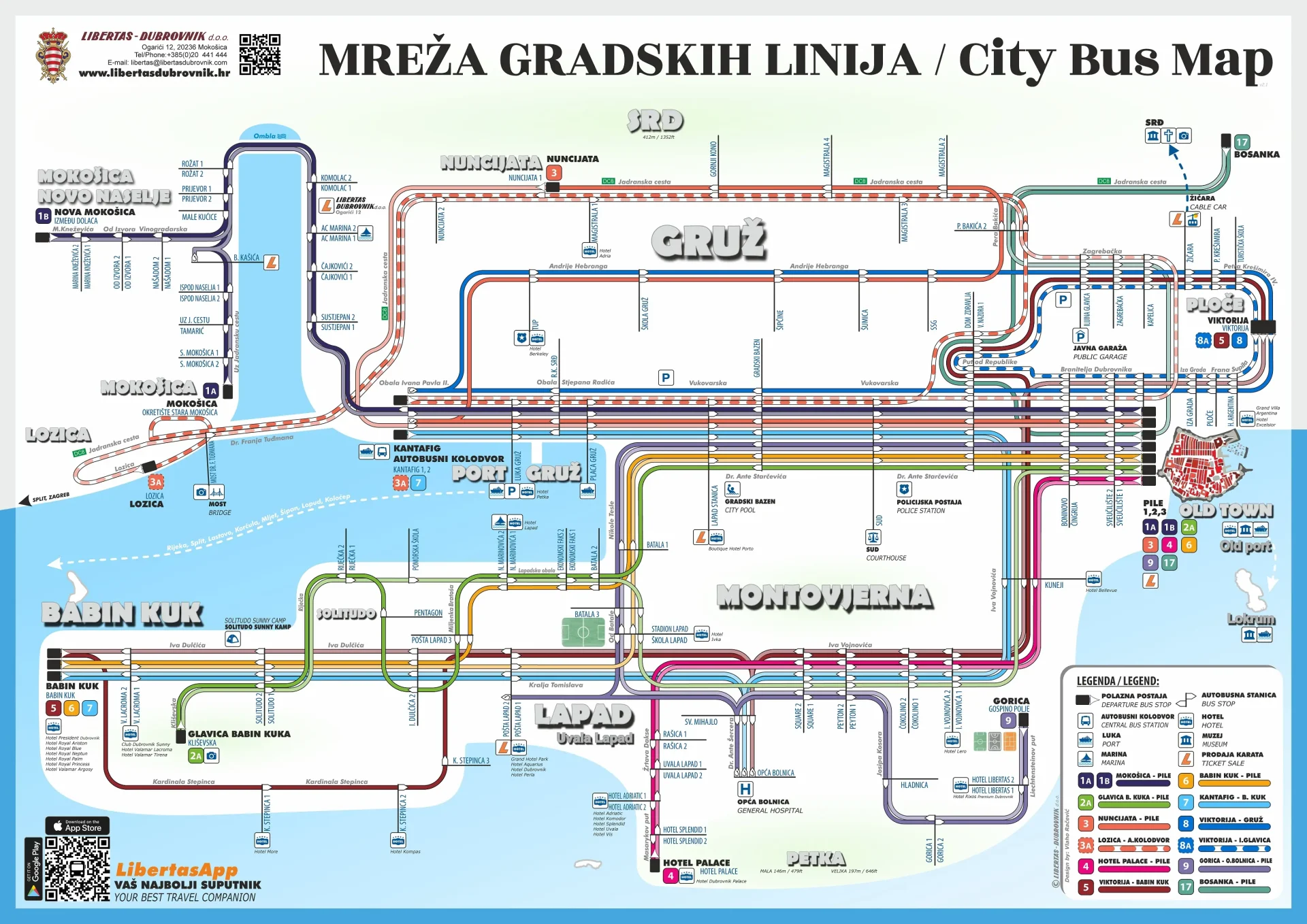 旧市街ピレ門前からGruz(グルージュ港)を経由してMokošica(モコシツァ)を結ぶルートです。Gruzからは長距離バスやクルーズが出ています。 |