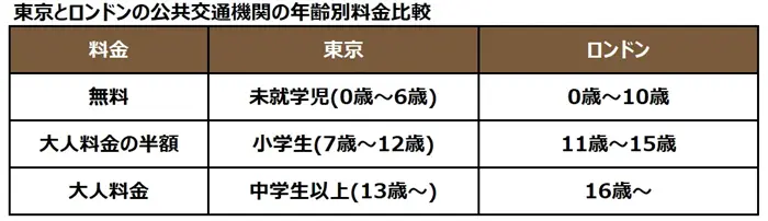 東京とロンドンでは子ども料金になる年齢が違う