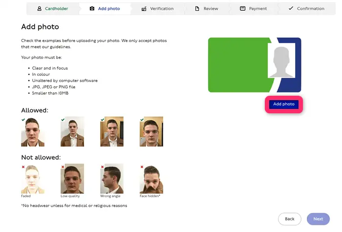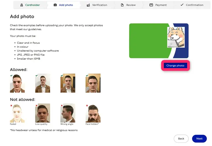 ーZip Oyster photocardの申請(顔写真アップロード→パスポート写真アップロード→手数料支払い手続き)