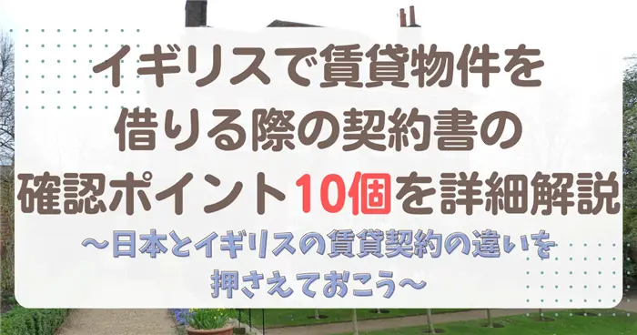 • イギリスの賃貸契約書で絶対に確認すべき10項目は下記のとおり