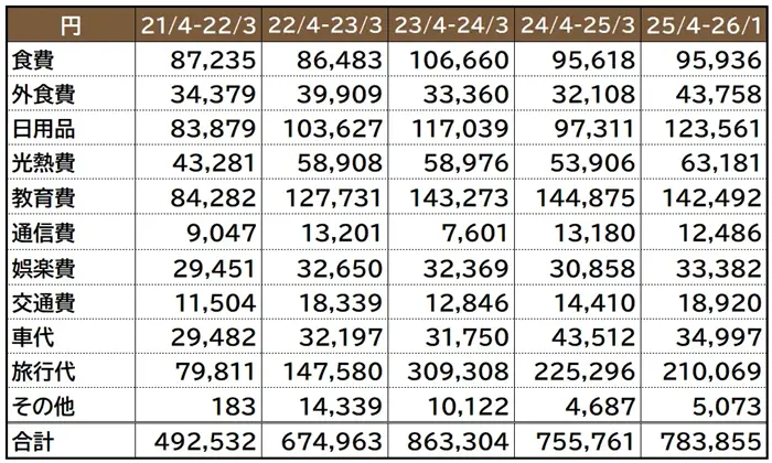 こちらの記事で項目別の月あたりの支出額について書いていますのでよろしければご参照ください。