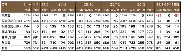 2025年12月から2月の資産状況変化