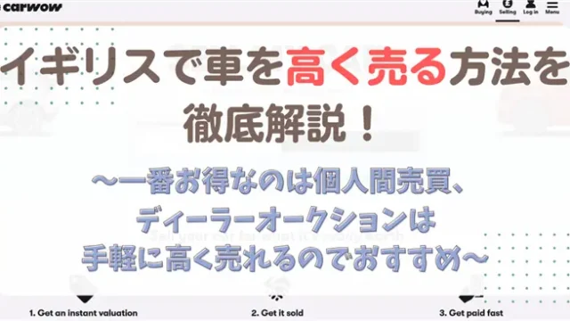 お得な情報 駐在員必見!イギリスで車を売るならCarwowのディーラーオークションが便利〜準備から引き渡しまでのプロセスを徹底解説〜 2025年9月26日 ぷーた https://london-chuzai.com/wp-content/uploads/2021/05/2021-05-26_22h26_081.jpg ロンドン海外駐在ブログ どうも、ロンドン駐在員のぷーたです。 今回の記事は、次のような方の疑問を解決するために書いています。 イギリスからの帰任が決 …